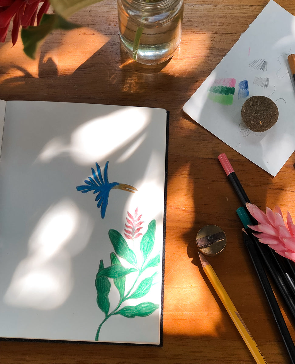 „Hallo, mein Name ist Froukje und ich lebe im Süden Costa Ricas, umgeben von einem der beeindruckendsten Ökosysteme der Welt. Jeden Tag bin ich inspiriert von dem enormen Reichtum an Leben, Farbe und Stille, den dieser Ort in sich trägt. Für dieses Design, in Zusammenarbeit mit Buvanha, wollte ich die Essenz dieser natürlichen Harmonie einfangen: die Wärme, die Bewegung und den Rhythmus des Dschungels.“